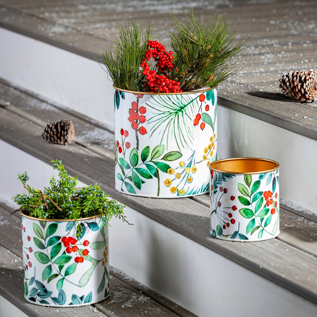 Enhance your home decor with the VivaStyle Planter set, featuring vibrant festive foliage designs on durable metal. Perfect for adding a splash of color to any space.
