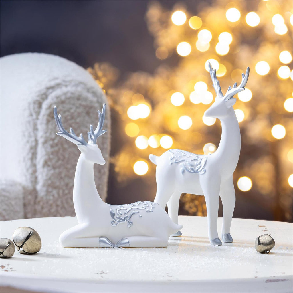 Elevate your holiday table setting with the Season to Sparkle Table Décor Deer Set. Crafted from high-quality ceramic, these elegant deer figurines feature intricate metallic embellishments that capture the light beautifully. Perfect for adding a touch of winter wonderland charm to your home, this set includes two deer in different poses, enhancing any mantel, dining table, or festive display. Measuring 2.36 inches in length, 9.06 inches in width, and 6.46 inches in height, these pieces are ideal for creating a stunning centerpiece. Celebrate the season with this exquisite and timeless addition to your holiday décor.