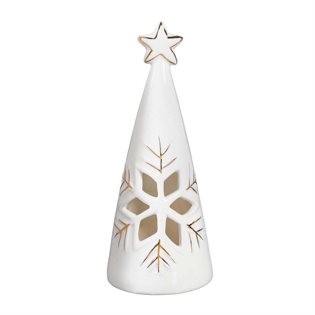 Illuminate your holiday season with this charming set of two ceramic Christmas trees, featuring intricate snowflake cutouts. These LED table decorations emit a warm, inviting glow, perfect for adding a festive touch to any room. Crafted from high-quality ceramic, each piece stands elegantly at a compact size, making them ideal for tabletops, mantels, or shelves. The star-topped design enhances the Christmas spirit, while the soft lighting creates a cozy ambiance for your home. Celebrate the season with this delightful addition to your holiday décor.