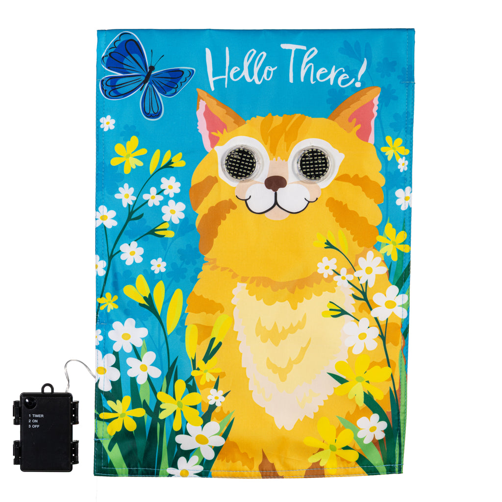 Winky Blinky Hello There Cat Applique Lighted Garden Flag