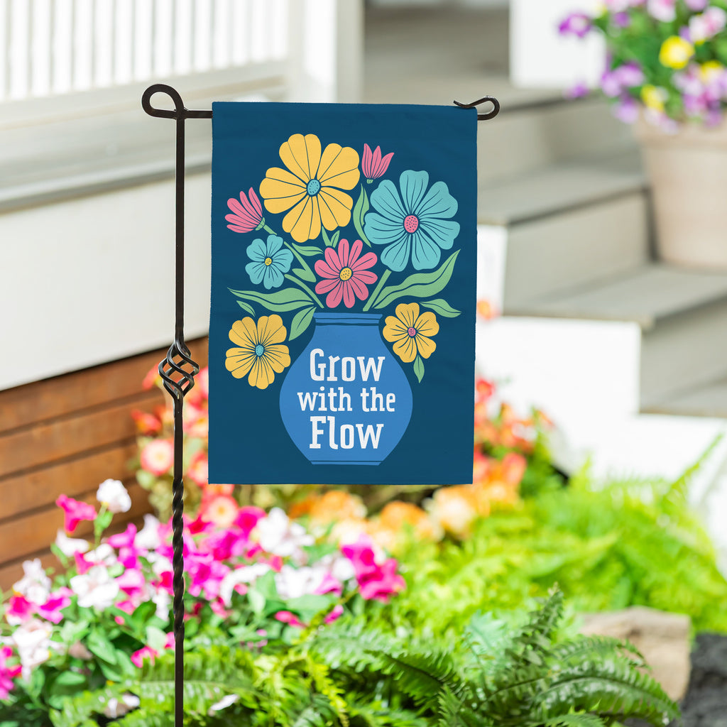 Celebrate the vibrant spirit of spring with the Grow with the Flow Burlap Garden Flag. Featuring colorful floral designs and an inspiring message, this flag adds charm to any outdoor space.