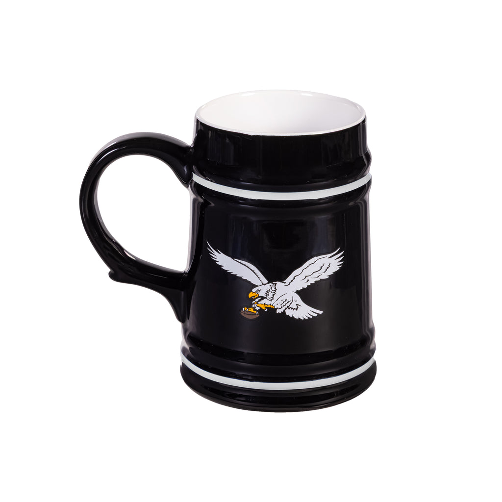 Celebrate your favorite team with the Philadelphia Eagles Throwback Ceramic Stein Cup, holding up to 24oz of your preferred beverage. This stylish stein features the iconic Eagles logo, making it a perfect addition to any fan's drinkware collection.