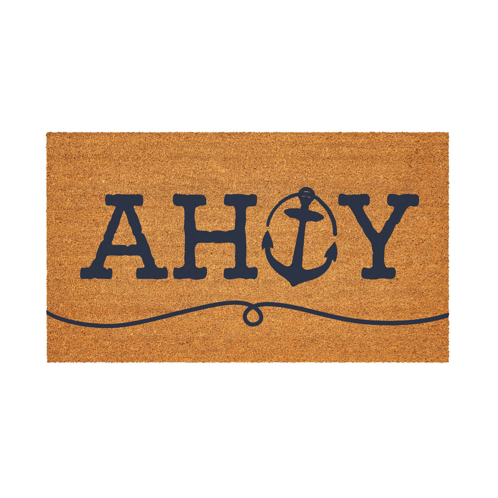 Welcome guests aboard with the Coastal Coir Mat featuring an 'Ahoy' anchor design. Crafted for everyday use, this mat adds a nautical touch to any entryway.