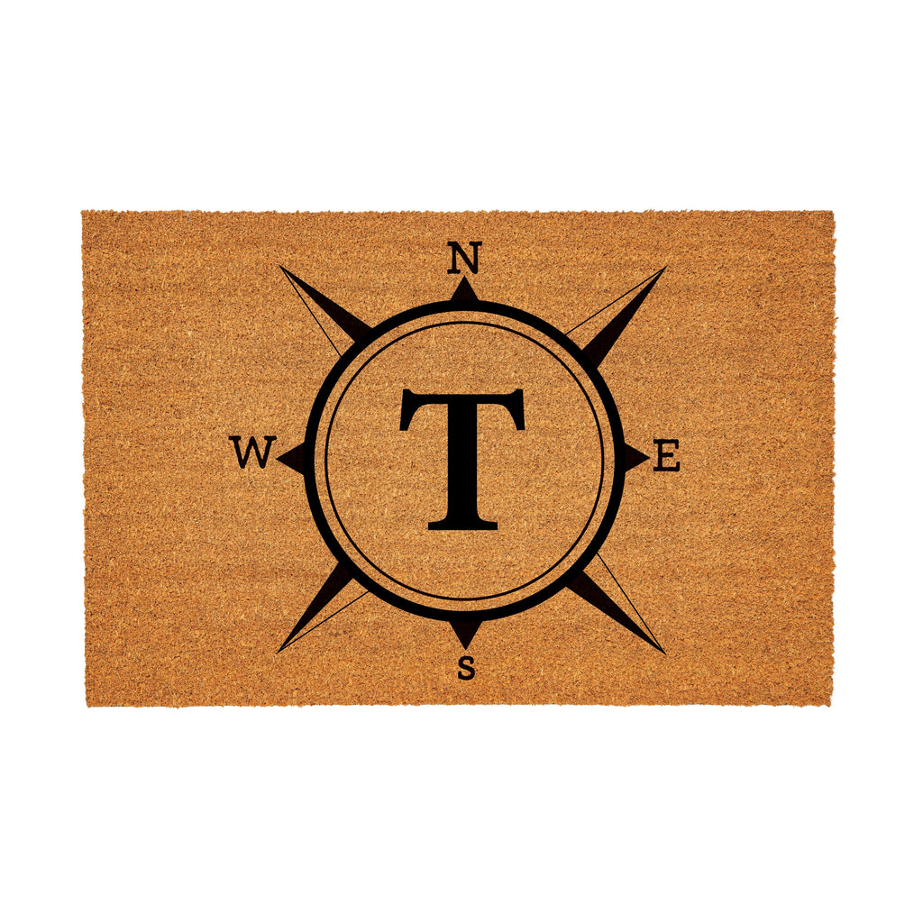 Welcome guests with the Coastal Coir Mat featuring a compass design and personalized monogram. This durable mat is perfect for adding a nautical touch to your entryway.