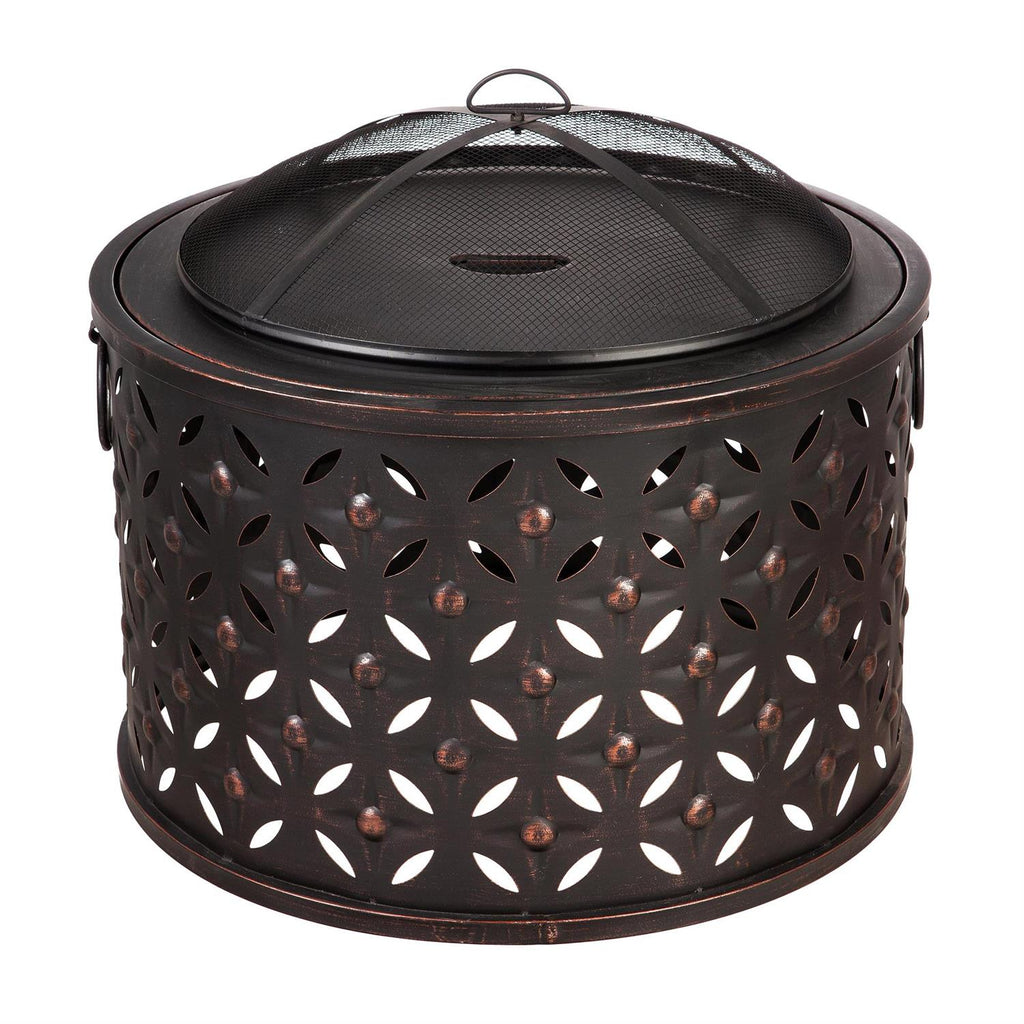 Enhance your outdoor gatherings with the Cylinder Lattice Firepit, designed to bring warmth and style to your patio. Measuring 26 inches in diameter and 20 inches in height, this firepit features an elegant lattice pattern that beautifully complements any garden setting. Crafted from durable metal, it ensures long-lasting use and is perfect for cozy evenings with family and friends. The included mesh cover adds safety by containing sparks and embers, making it ideal for any season. Whether you're roasting marshmallows or enjoying a quiet evening, this firepit is your perfect outdoor companion.