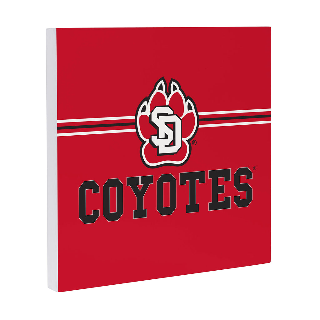 Show your school spirit with the University of South Dakota Wood Wall Sign, featuring the iconic Coyotes logo on a bold red background. Perfect for dorm rooms or home offices, this sign adds a collegiate touch to any space.