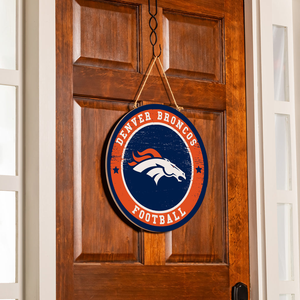Show your team spirit with this Denver Broncos round door decor, perfect for adding a touch of football pride to your home. Made with durable materials, this piece is designed to withstand the elements and keep looking great year-round.