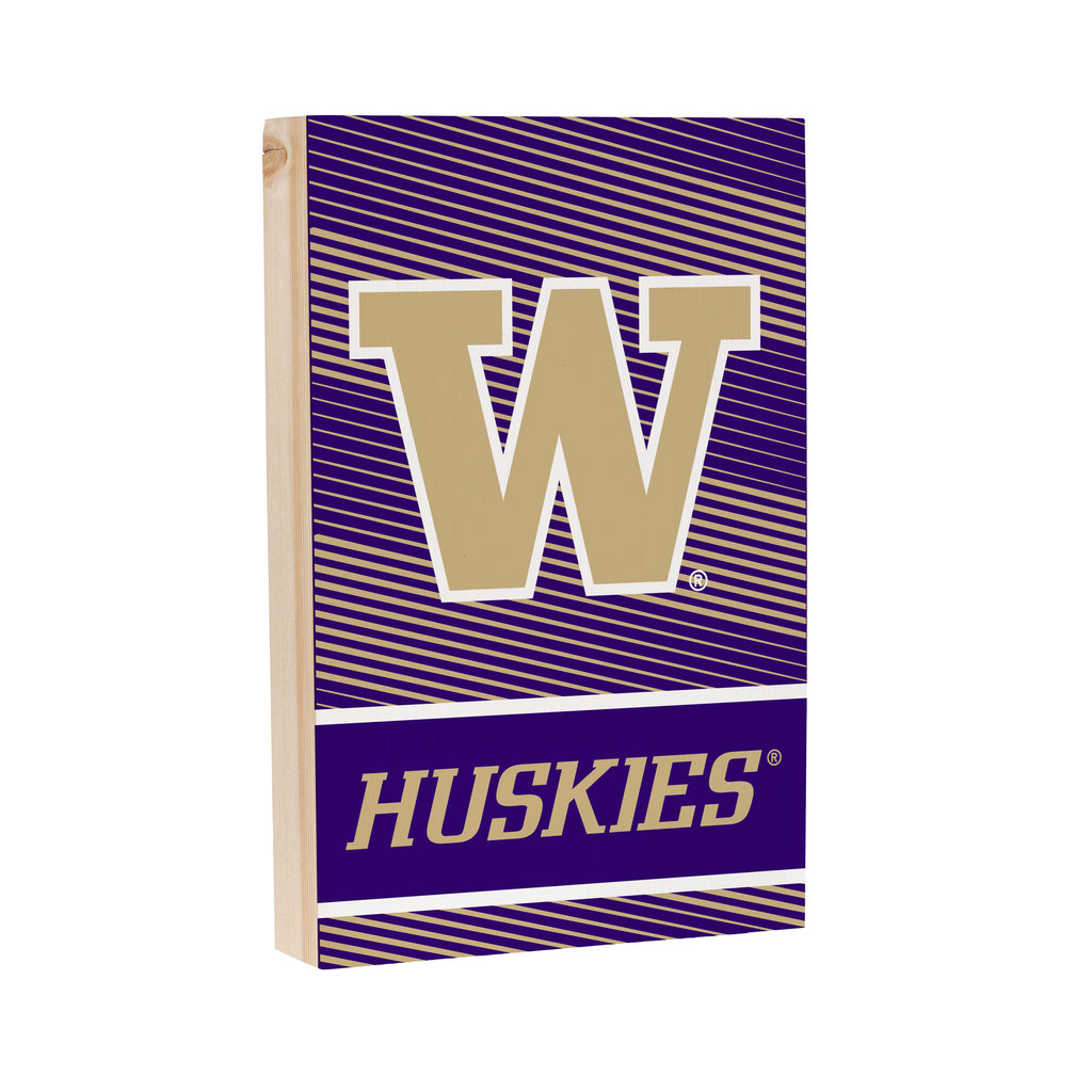 Showcase your school pride with this University of Washington wall art, featuring the iconic 'W' logo and 'Huskies' text in vibrant purple and gold.