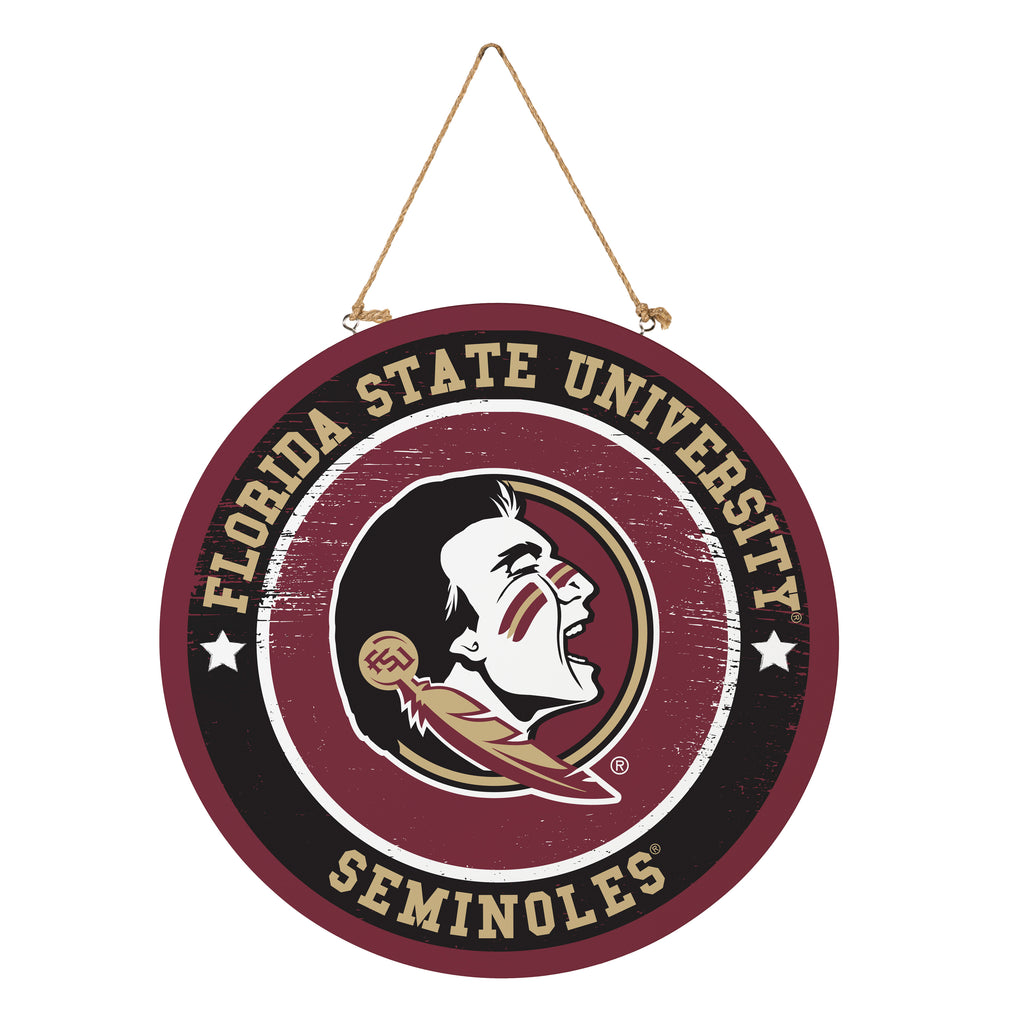 Show off your school spirit with this Florida State University round door decor, featuring a classic Seminoles design. Perfect for adding a touch of collegiate pride to any entryway.