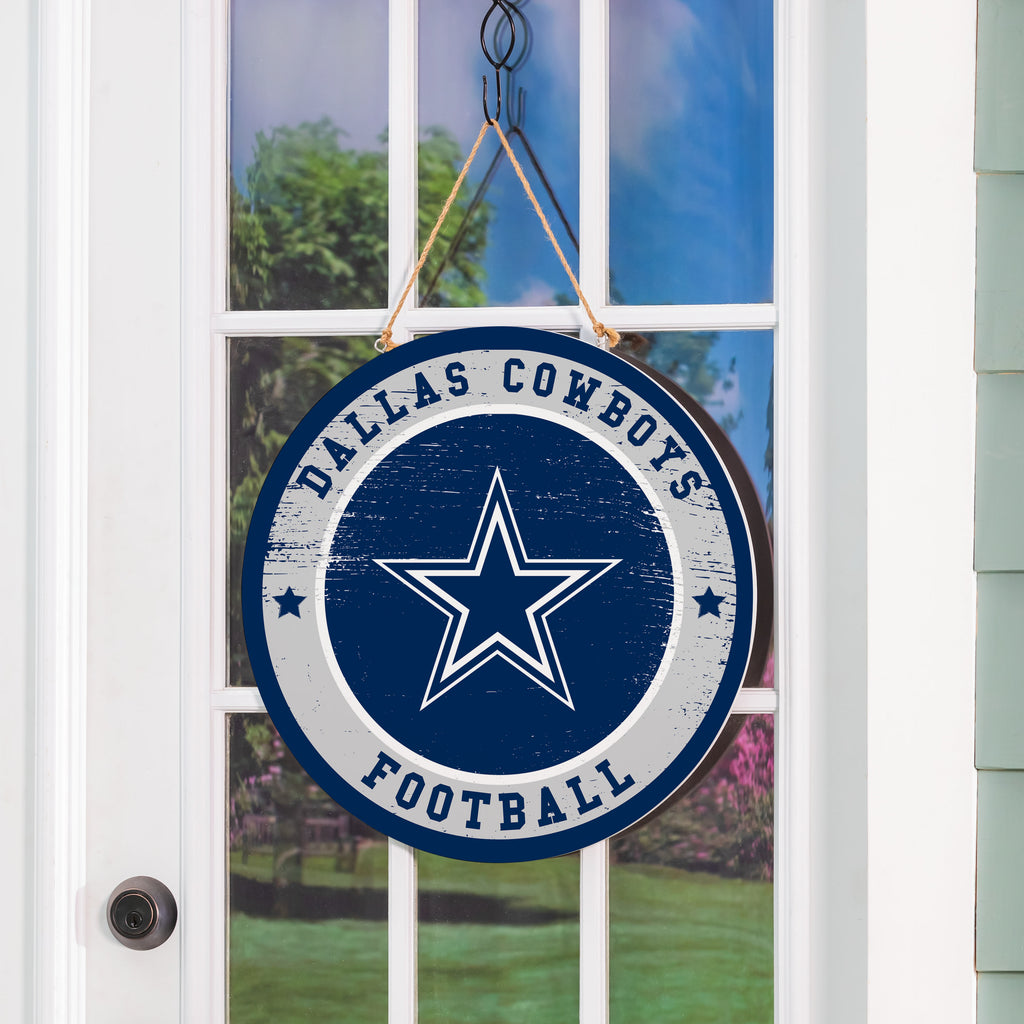 Show off your team spirit with the Dallas Cowboys Round Door Decor, perfect for any football fan. This 18-inch round sign features a bold Dallas Cowboys design and is ready to hang with an attached rope.