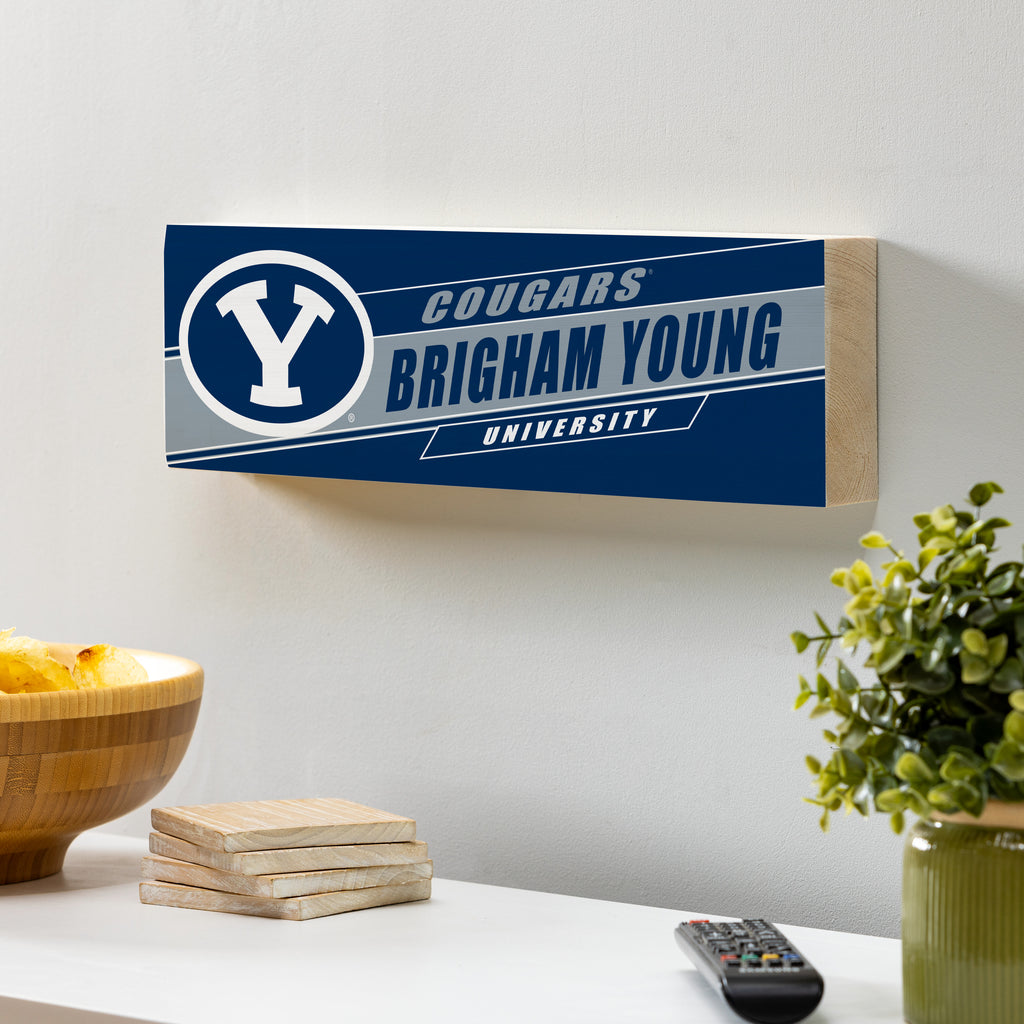 Celebrate your school spirit with the Brigham Young University Mantle Sign, perfect for any fan's home decor. Measuring 5x18 inches, this decorative accent will add a touch of elegance to your indoor living space.
