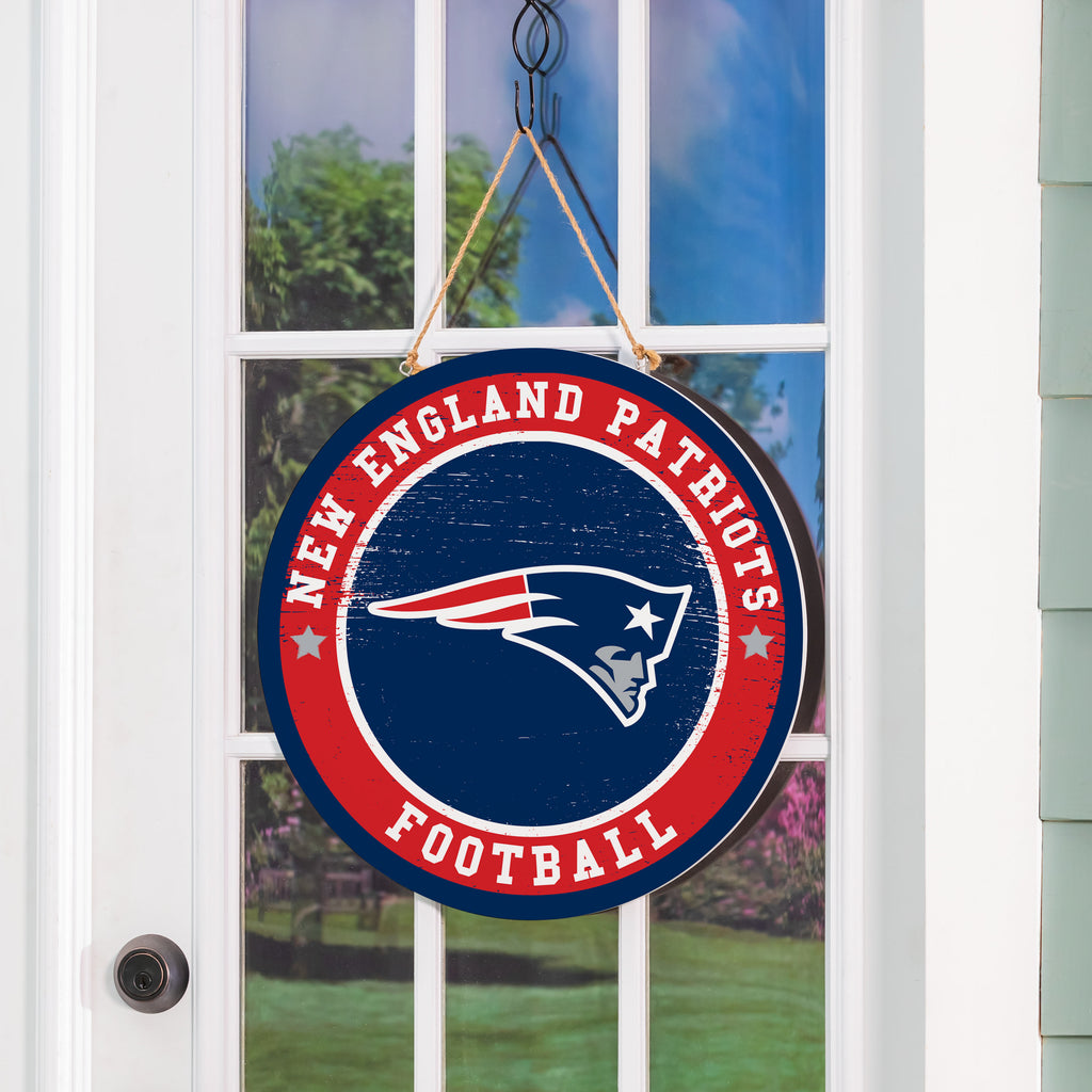 Show off your team spirit with this New England Patriots round door decor, featuring an iconic logo design. Perfect for football fans, this piece adds charm to any entryway.