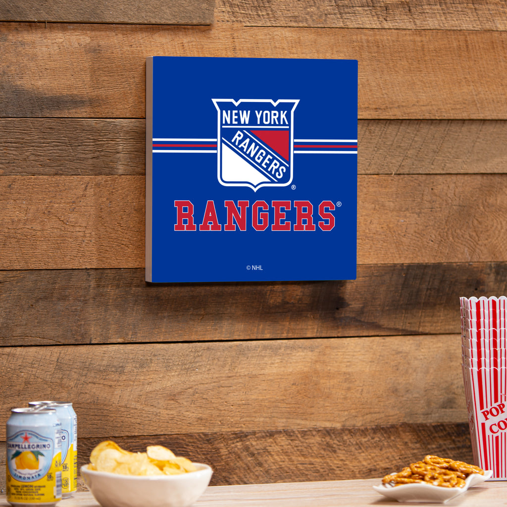 Celebrate your favorite team with the New York Rangers Wood Wall Sign, featuring the iconic logo and vibrant colors. This 12x12 piece is perfect for any fan's home or office decor.