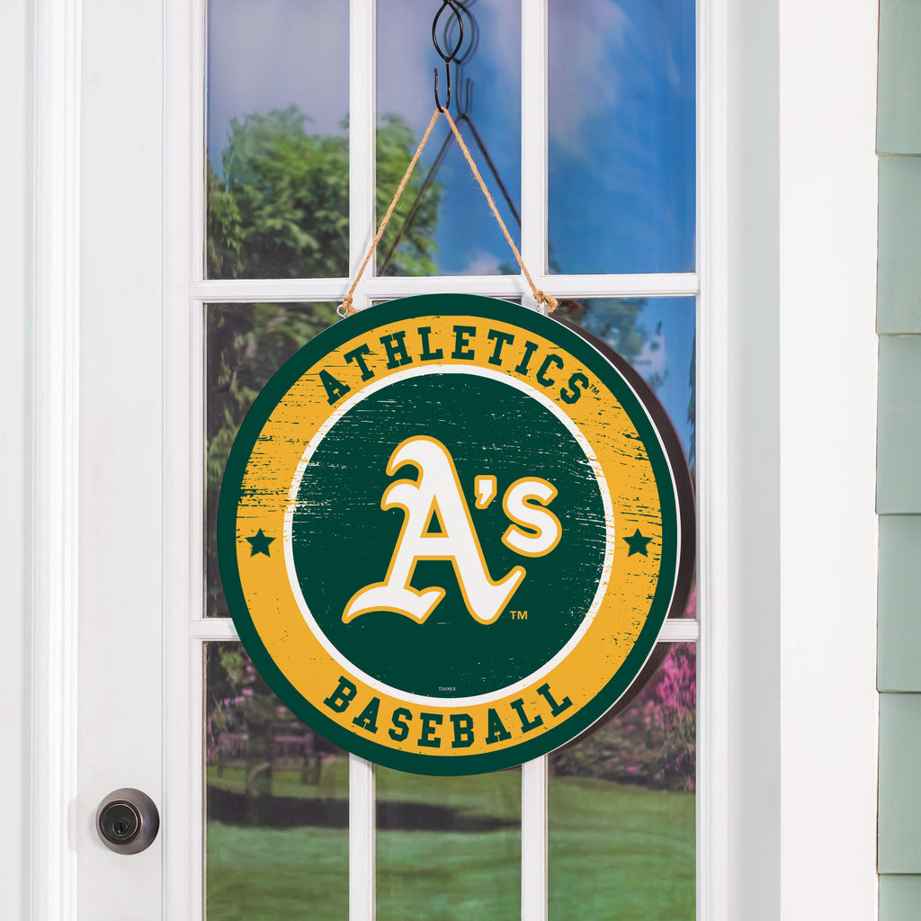 Showcase your team spirit with this Athletics Round Door Decor, perfect for any baseball fan. Its vibrant design is sure to enhance your home entrance.