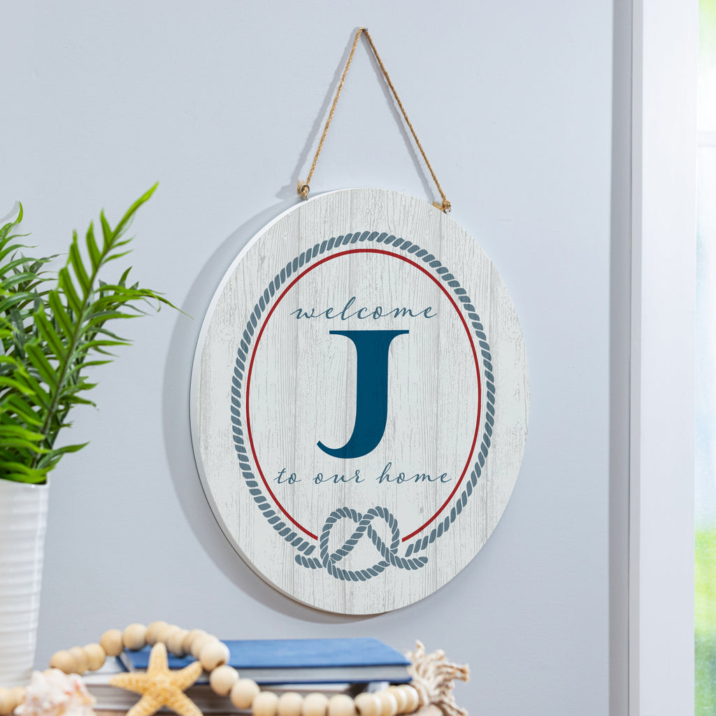 Enhance your entryway with this Coastal Door Decor Monogram, featuring a stylish whitewashed finish and a welcoming 'J' design. Perfect for adding a personalized touch to your home's exterior decor.