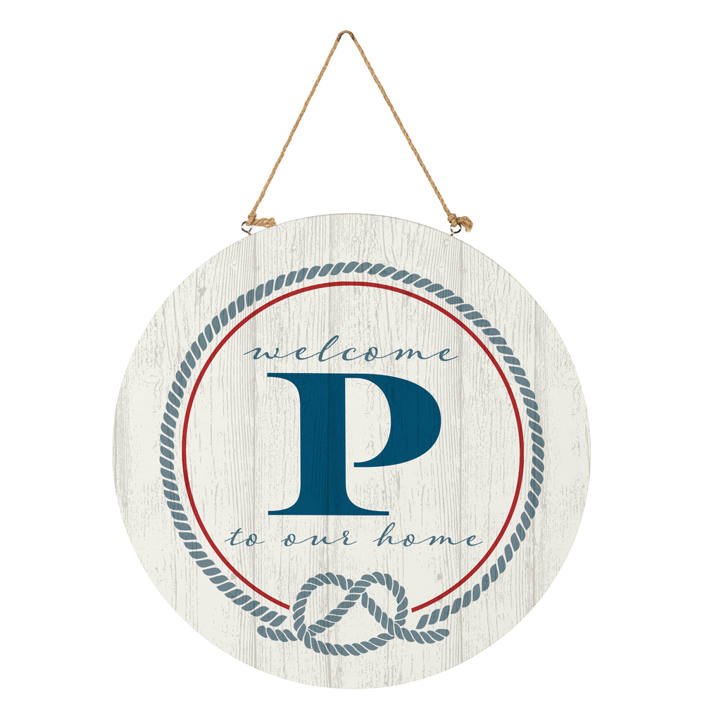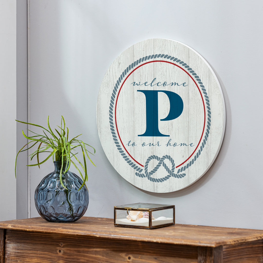 Add a touch of coastal charm to your entryway with this monogrammed door decor, featuring a welcoming design in whitewashed wood.