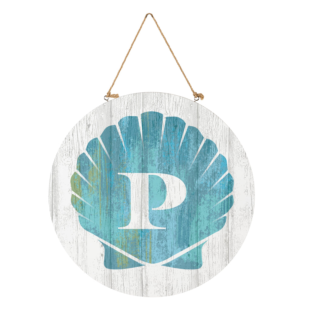 Enhance your entryway with the Coastal Door Decor Shell Monogram, featuring a serene seashell design and personalized initial 'P'. Perfect for everyday display, this round door hanger adds a touch of coastal charm to your home.