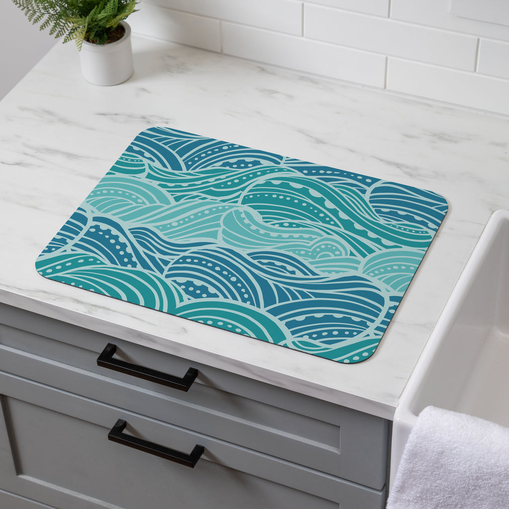 Blue Coastal Make Waves Drying Mat, 20"x15"