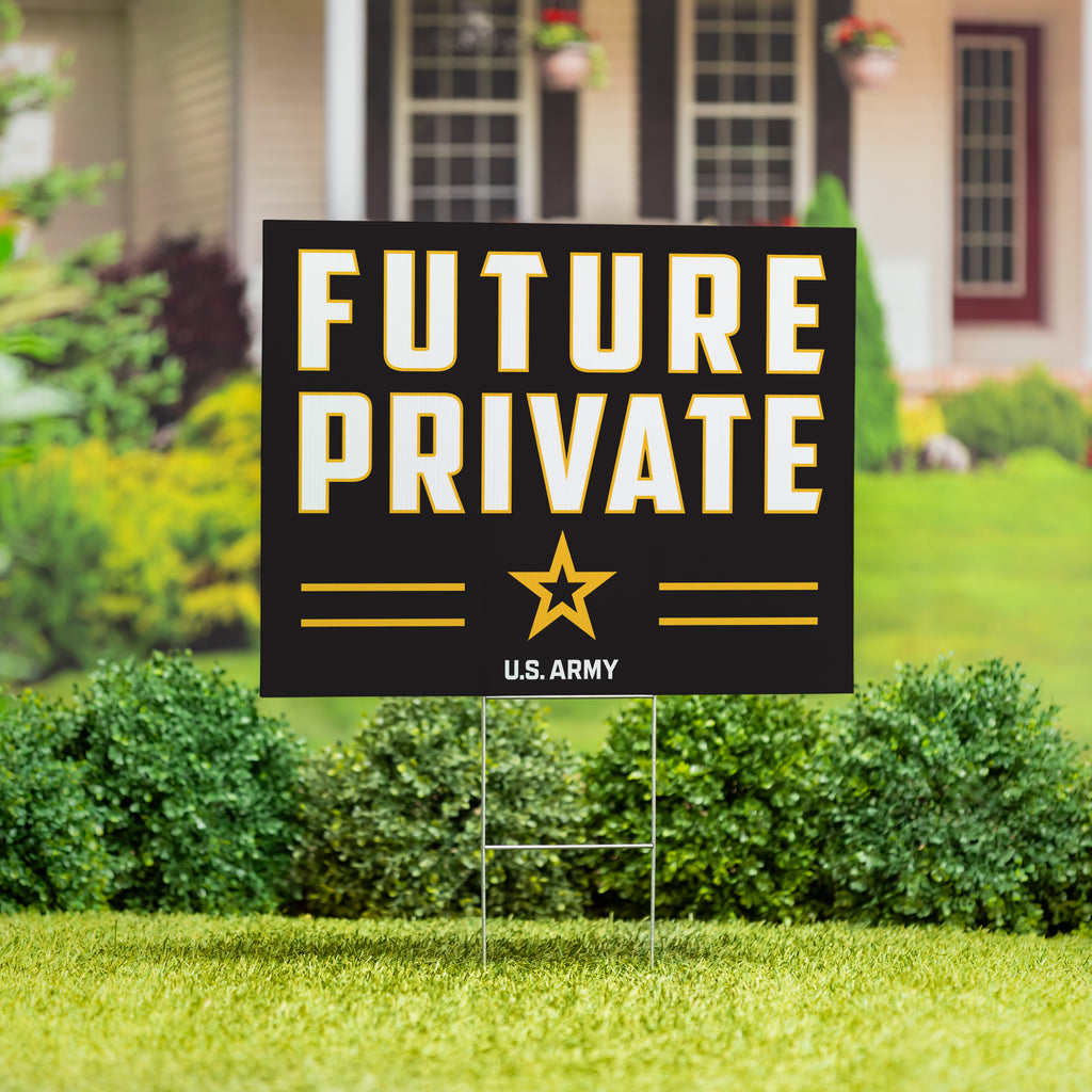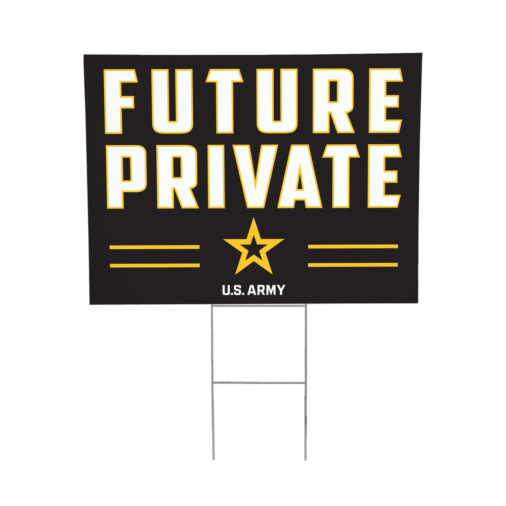 • Bold design with 'Future Private' and U.S. Army insignia for impactful visual appeal.