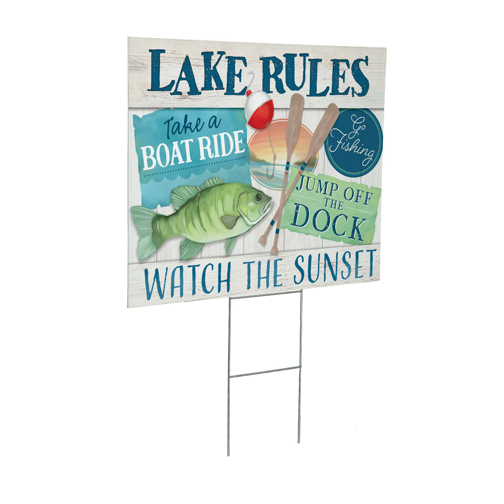Blue Coastal Yard Sign, "Lake Rules", 24"x18"