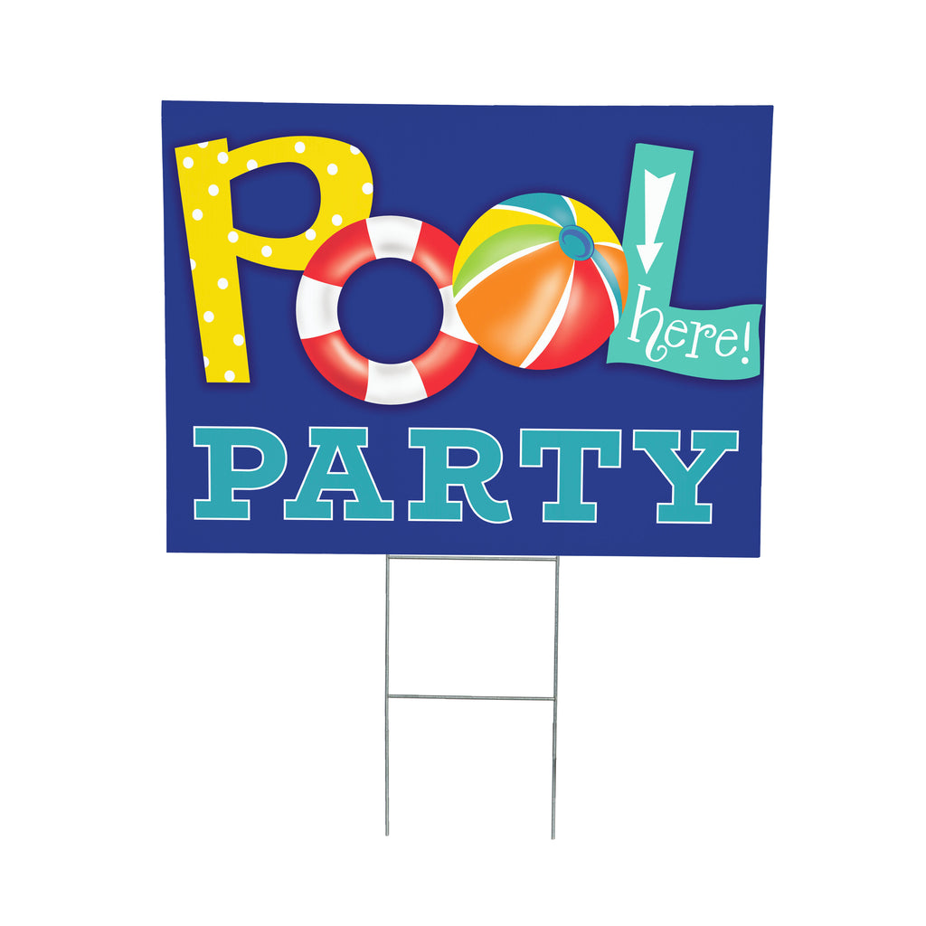 Celebrate summer fun with this vibrant 'Pool Party' yard sign, perfect for adding a touch of whimsy to your garden or poolside gatherings.