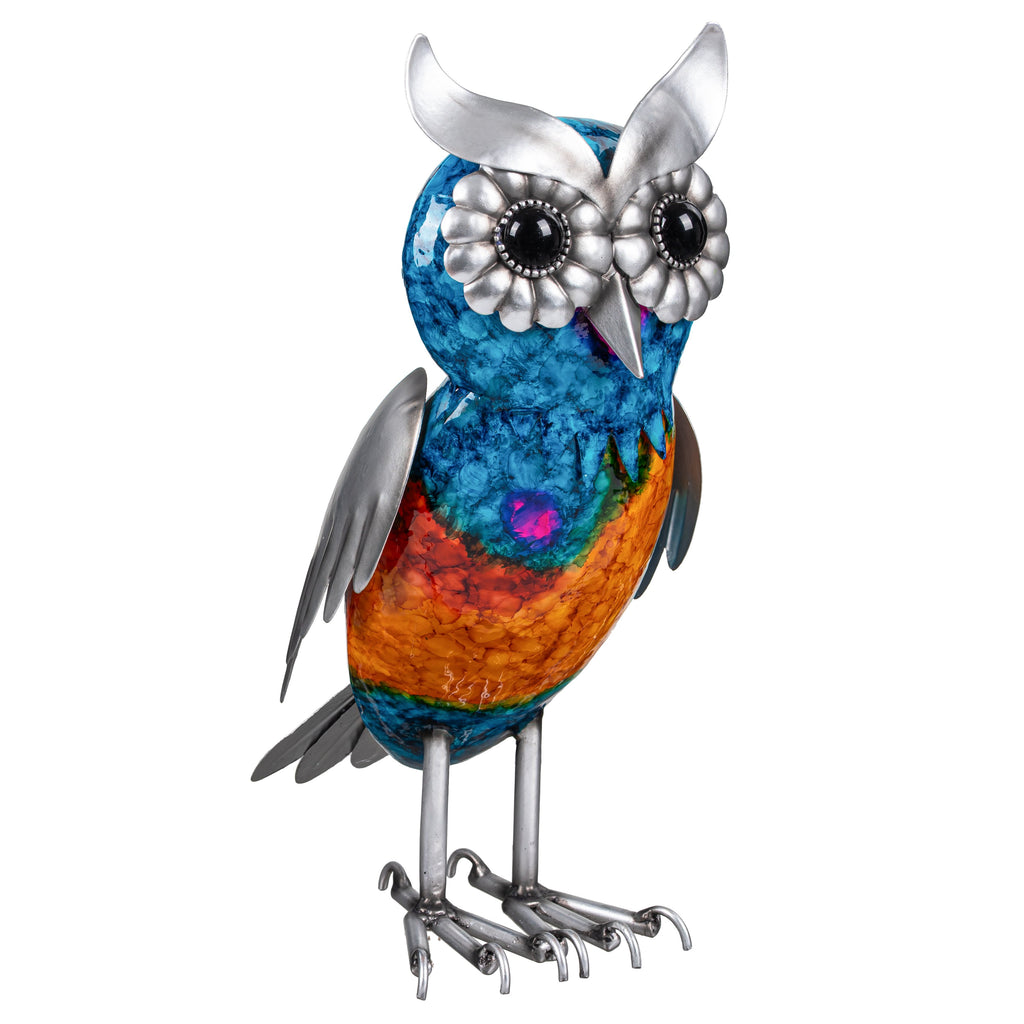 Enhance your garden with this vibrant Metal Gradient Owl Garden Statue, featuring a captivating mix of colors and a striking design.