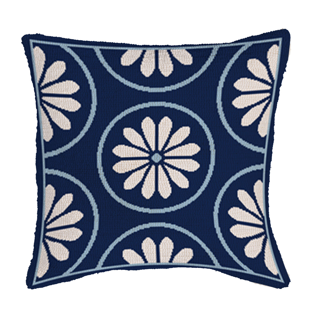 Blue Coastal Indoor/Outdoor Hooked Pillow 18"x18"