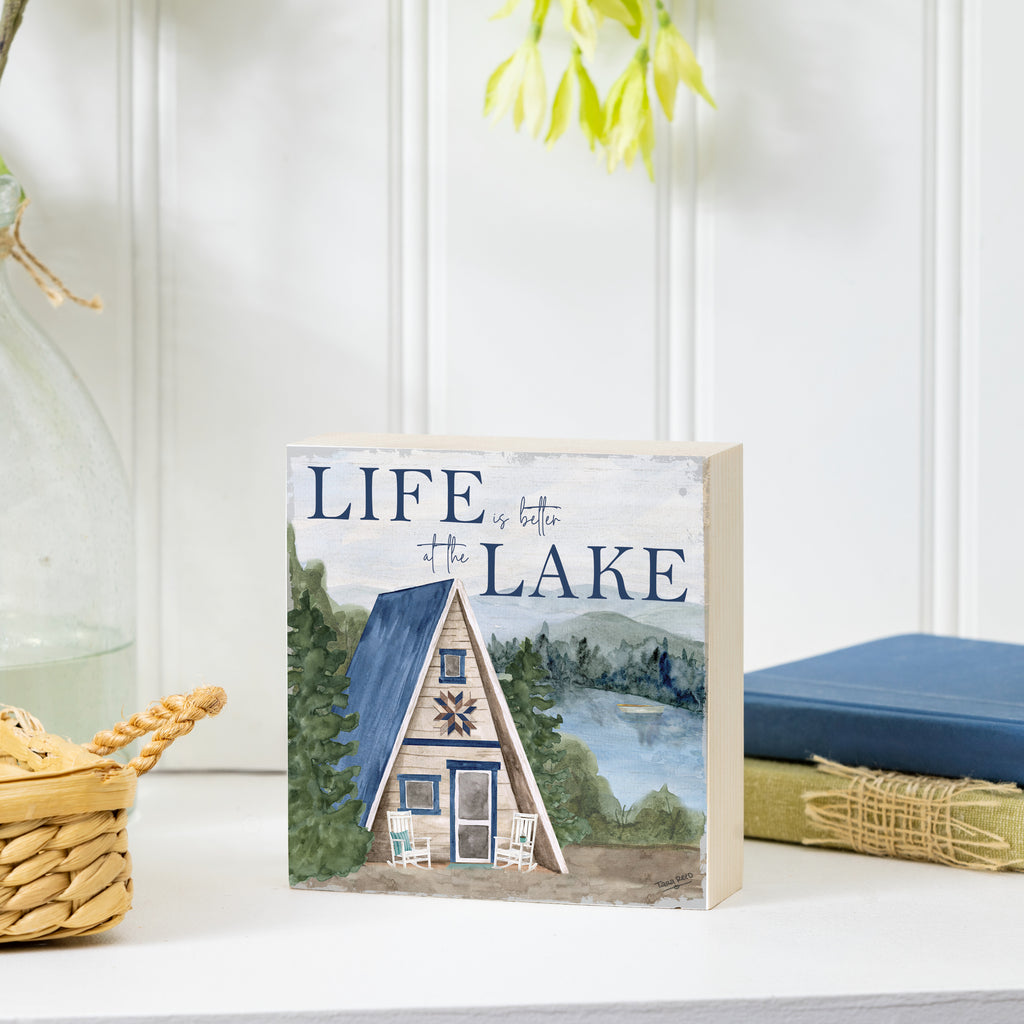 Enhance your living space with the Lake Living Wooden Block, featuring a charming lake house design with the phrase 'Life is Better at the Lake'. Perfect for adding a touch of nature-inspired decor to any indoor wall.