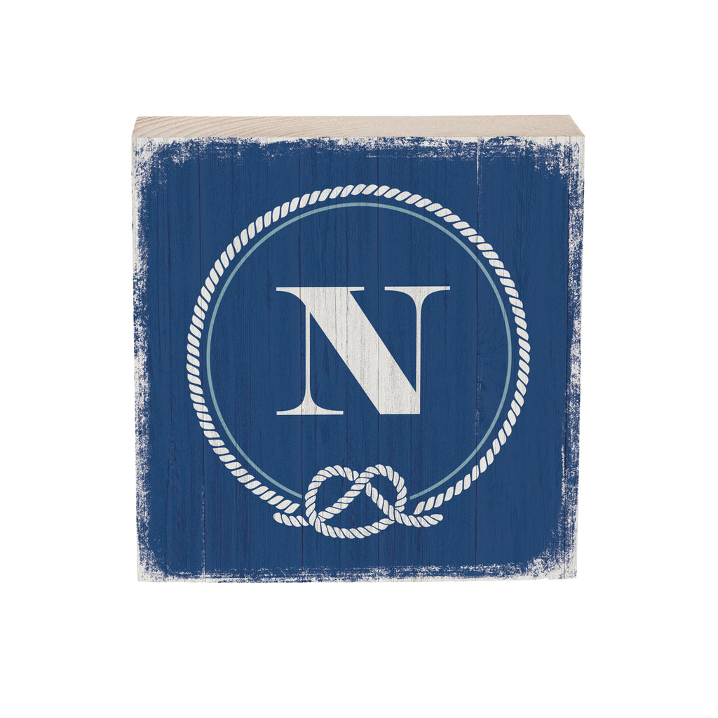 Add a nautical touch to your home with this wooden block featuring a monogram 'N'. Perfect for enhancing any indoor space with its coastal charm.