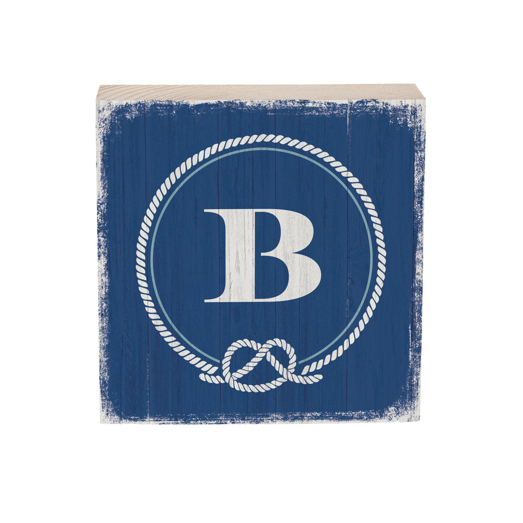 Add a nautical touch to your home with this Coastal Wooden Plock Monogram. The rustic wooden design features a navy background with a rope-accented letter 'B'.
