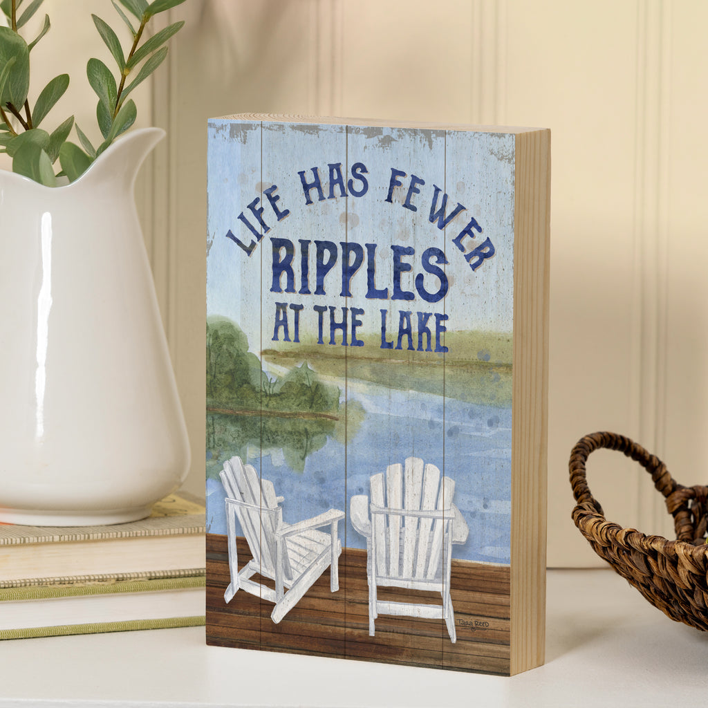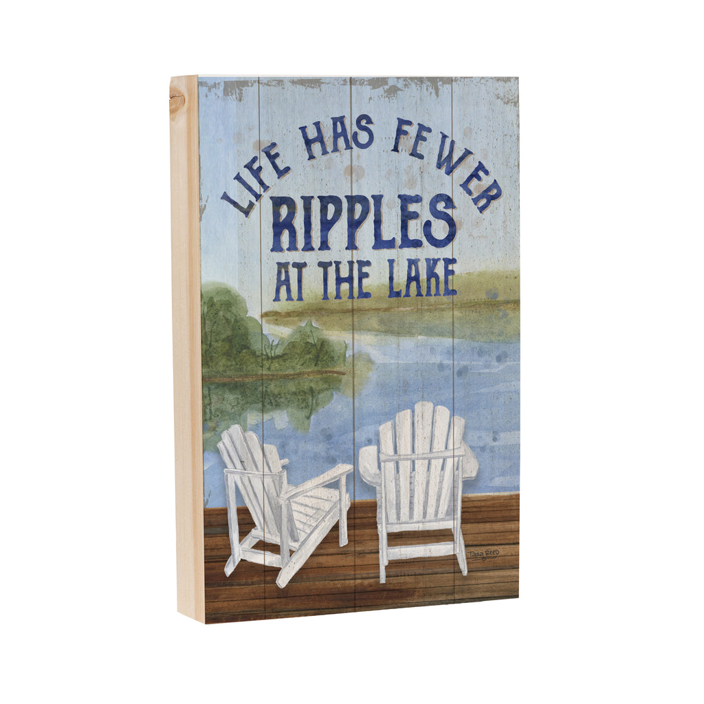 Enhance your indoor space with the 'Ripples at the Lake' wall art, featuring a serene lakeside view with Adirondack chairs. Perfect for adding a touch of tranquility to your home decor.