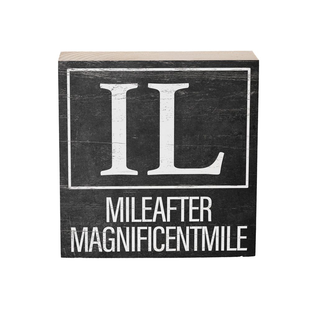 Celebrate your love for Illinois with this charming wooden block featuring the iconic 'IL' and 'MILE AFTER MAGNIFICENT MILE' text. Perfect for adding a touch of state pride to any room.