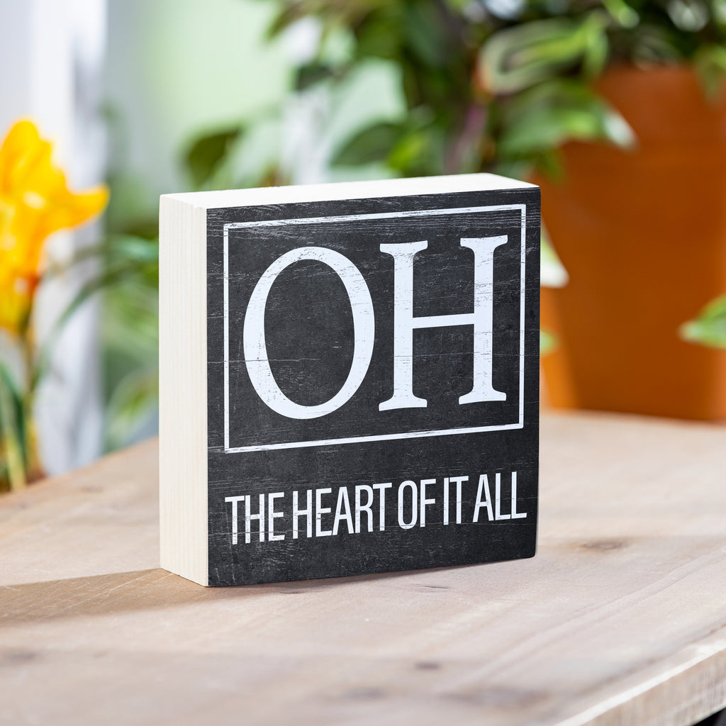 Celebrate Ohio pride with this stylish wooden block featuring the phrase 'The Heart of It All.' Perfect for adding a personalized touch to any room.