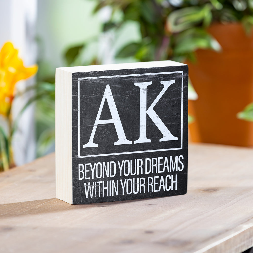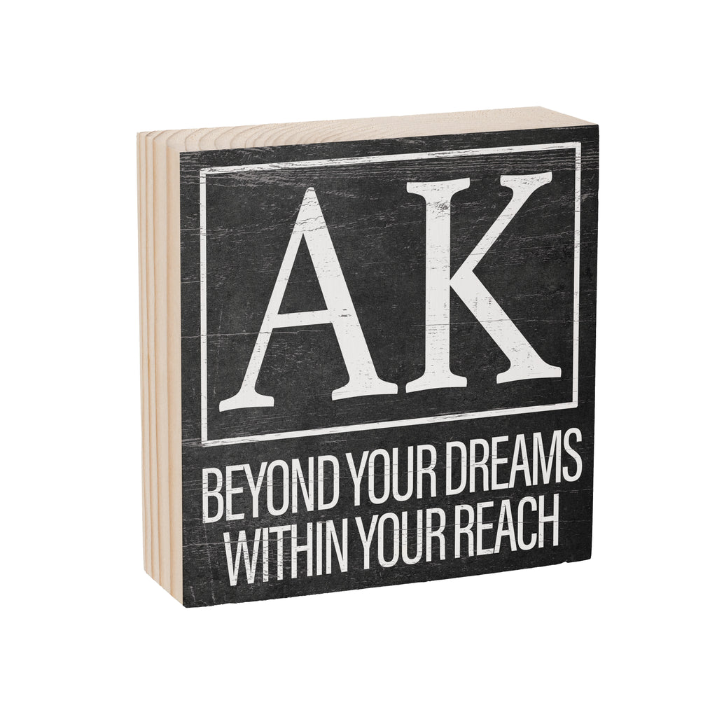 Elevate your home decor with this stylish Alaska-themed wooden block, perfect for adding a touch of rustic charm to any room. Featuring bold lettering and a motivational phrase, it's both decorative and inspirational.