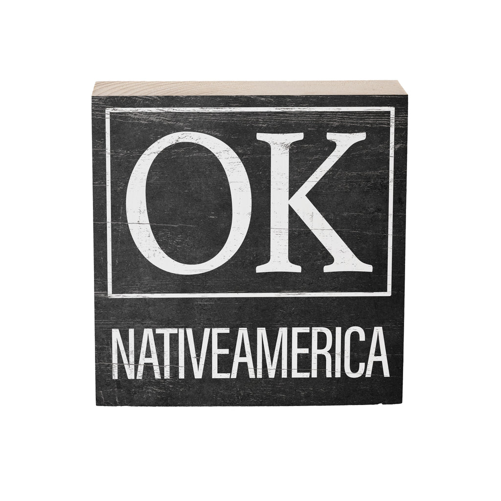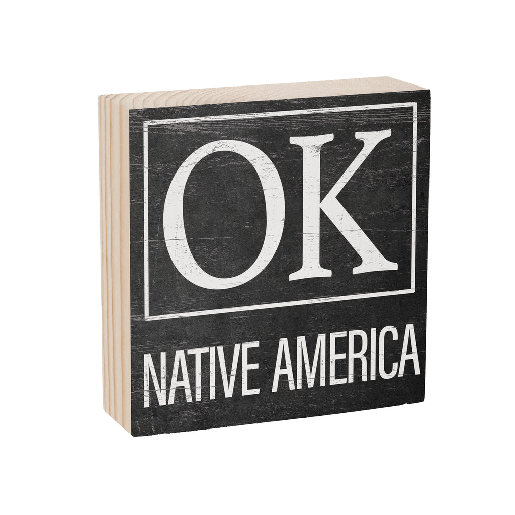 Celebrate Oklahoma pride with this rustic wooden wall block, featuring 'OK Native America' in bold lettering. Perfect for adding a touch of local charm to any room.