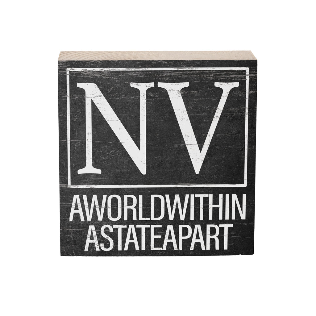 Celebrate your love for Nevada with this charming wooden block wall decor, featuring the bold initials 'NV' and the phrase 'A World Within A State Apart.' Perfect for adding a touch of state pride to any room.