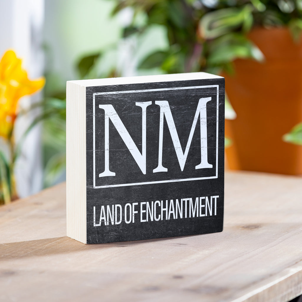 Celebrate the charm of New Mexico with this stylish wooden block, perfect for any indoor wall decor. The piece features a bold 'NM' design with 'Land of Enchantment' inscribed beneath.