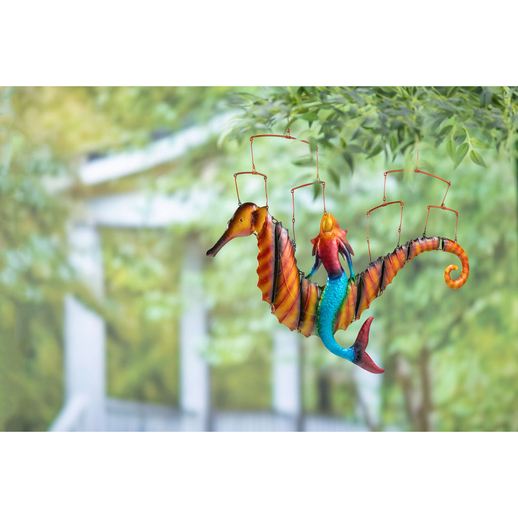 Out for an adventure on the reef, our detailed Metal Mermaid And Seahorse Mobile is a whimsical seaside accent for any home or garden. Sitting proudly on her seahorse steed, this mermaid mobile is made in Bali by skilled artisans. Its hand-painted design