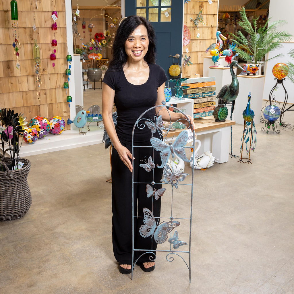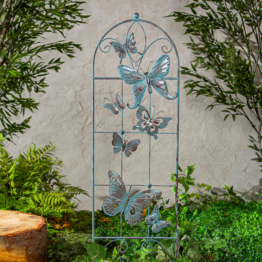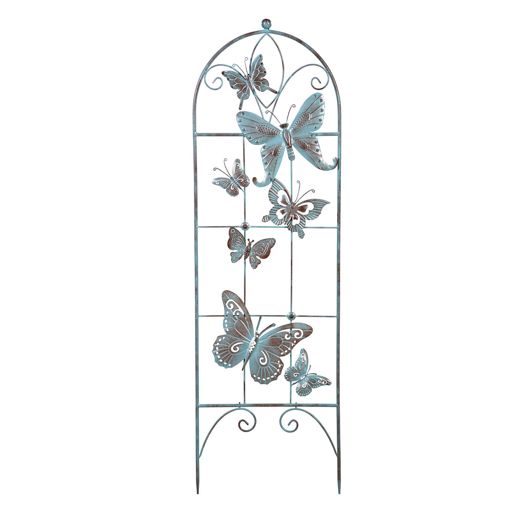 Enhance your garden with this elegant metal butterfly trellis, featuring a verdigris finish for a vintage touch. Perfect for supporting climbing plants while adding a decorative element to outdoor spaces.