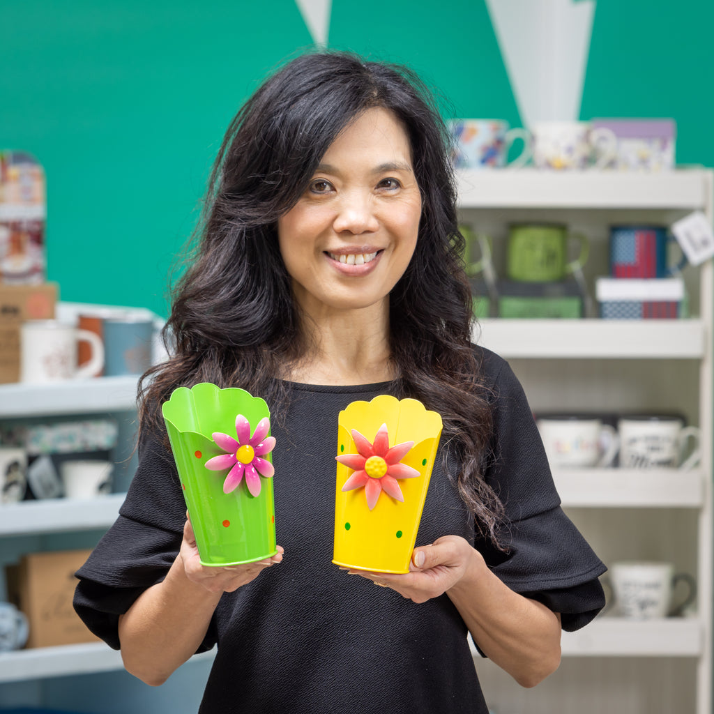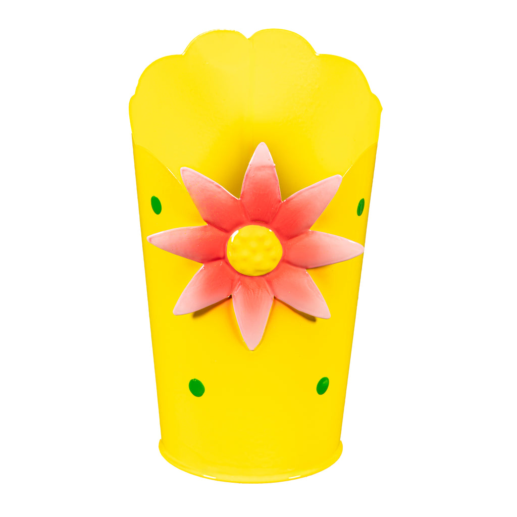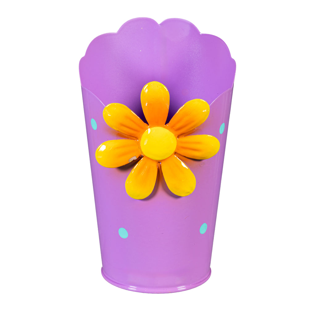 Brighten up your garden with these charming metal flower buckets featuring whimsical flower designs. Perfect for adding a splash of color to your outdoor space.