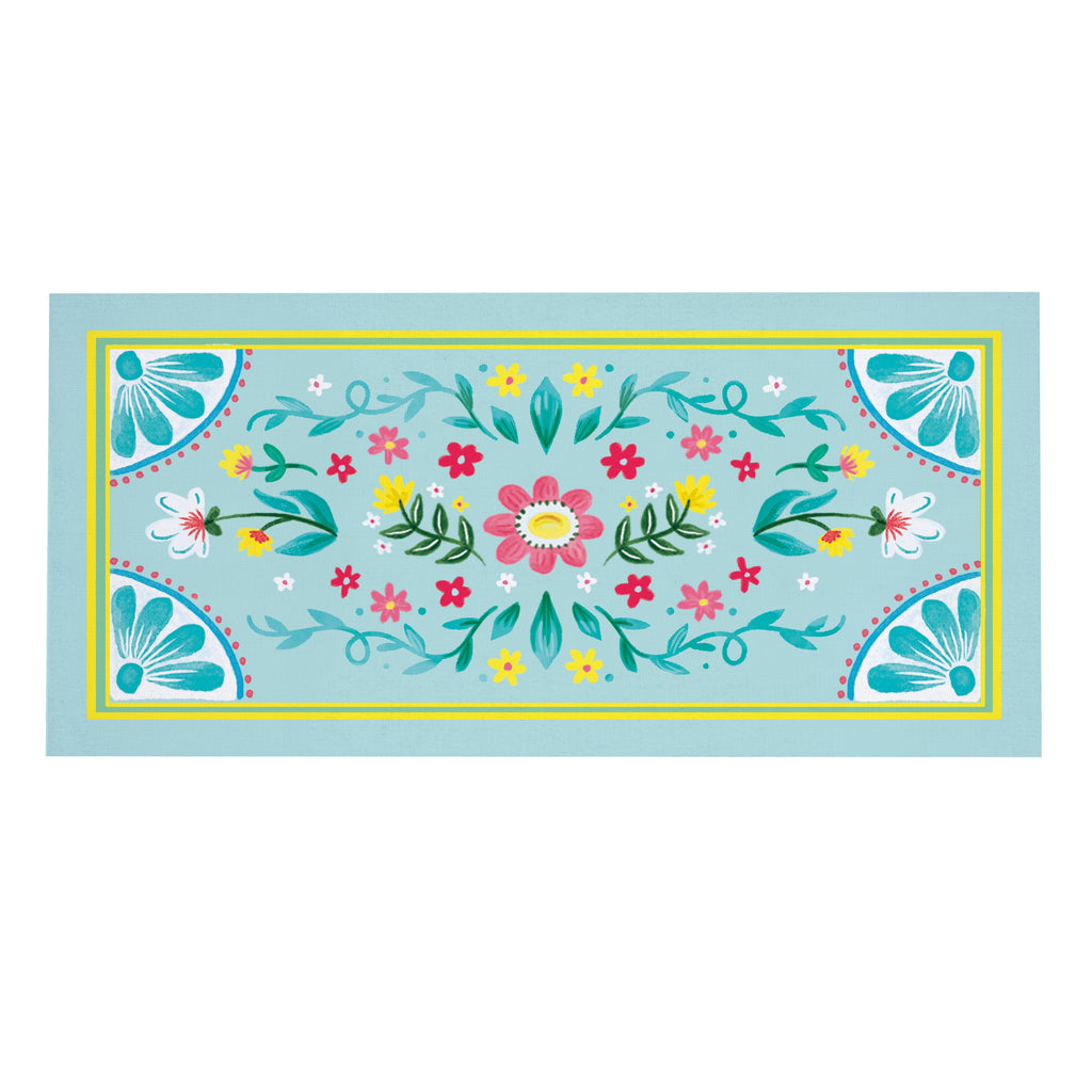 The Bloom Where You're Planted Sassafras Switch Mat features a vibrant floral design perfect for welcoming spring. Its intricate patterns and durable construction make it a stylish addition to any entryway.
