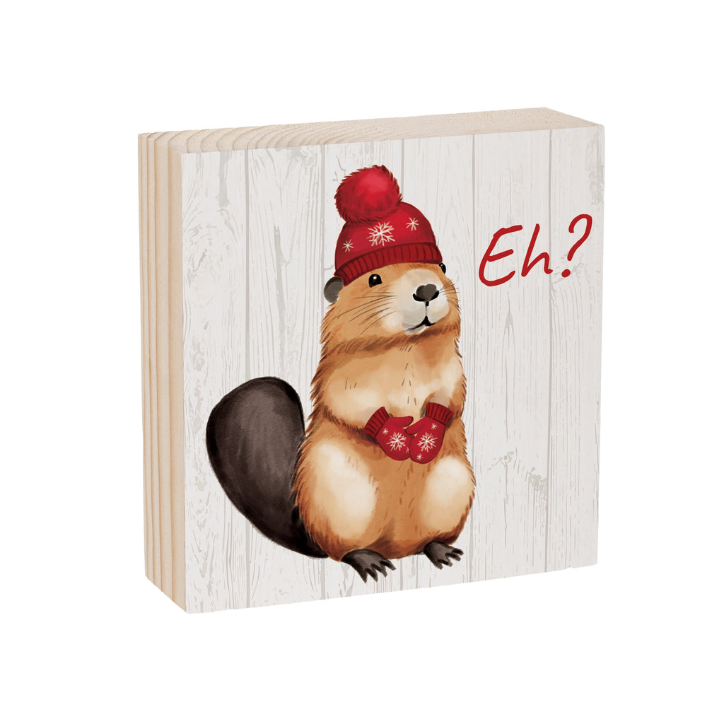 Canada Strong Vintage Wood Sign Plock, Beaver "Eh?", 6"x6"