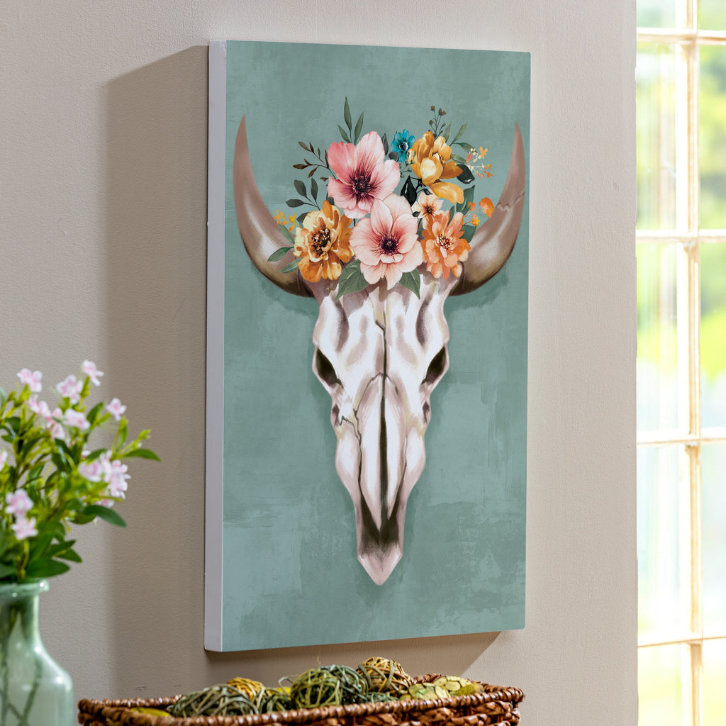 - Features a colorful floral design on a steer skull for a unique look.