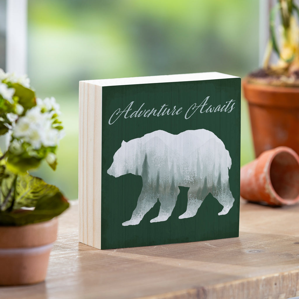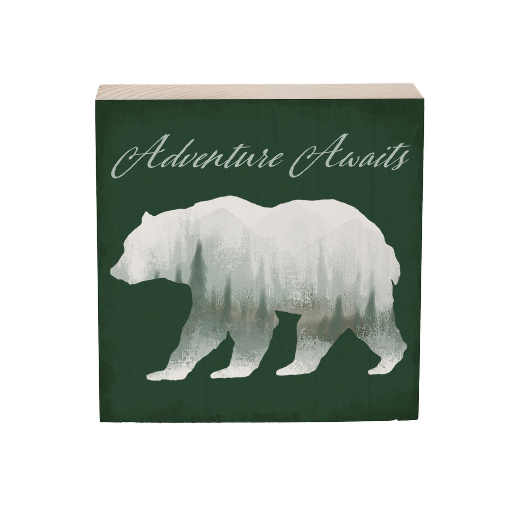 High Country Painting Wood Sign Plock, Bear "Adventure Awaits", 6"x6"