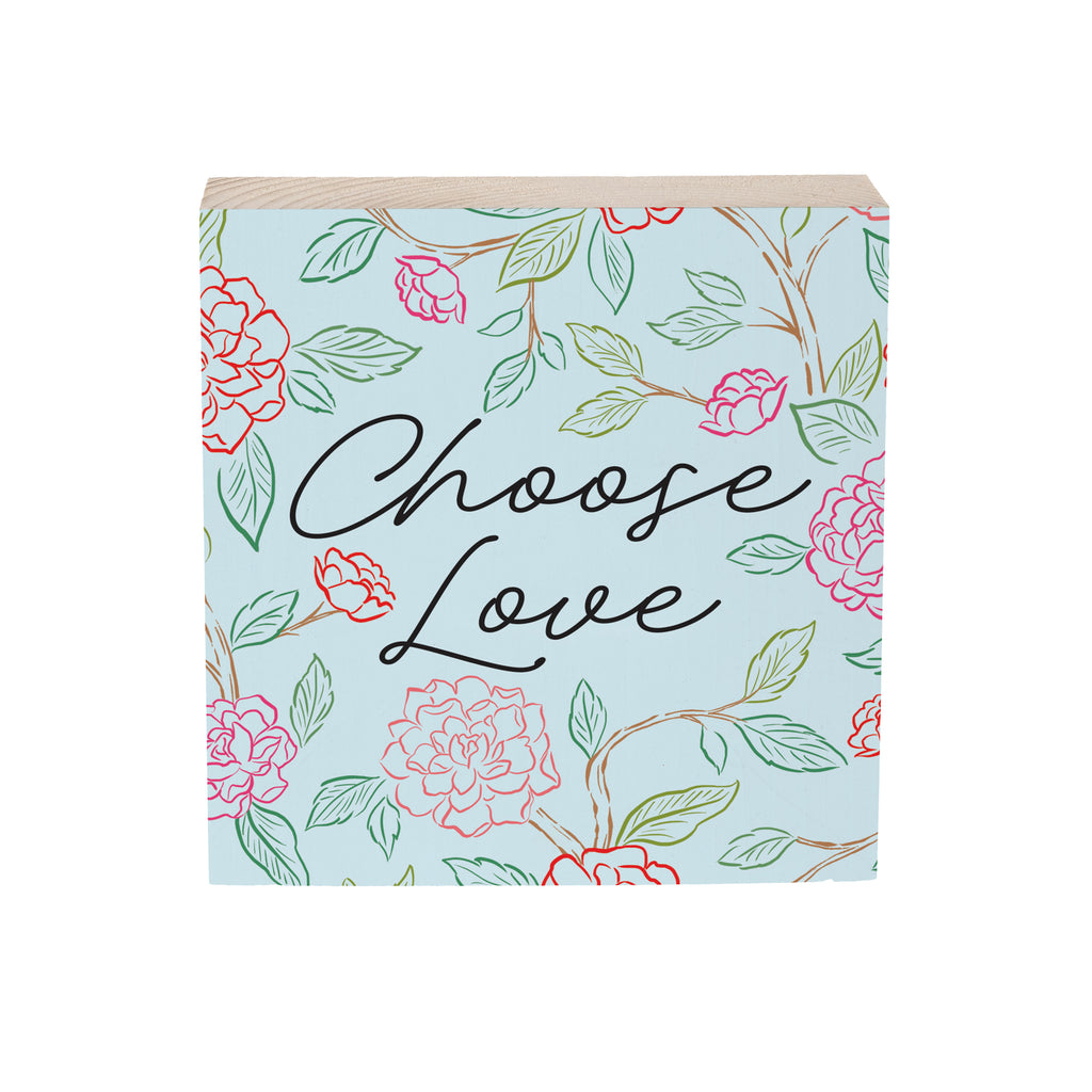 The Peony Toile Wood Sign Plock features a charming line art design with blooming peonies and the inspiring message 'Choose Love'. Perfect for adding a touch of elegance and positivity to any room.