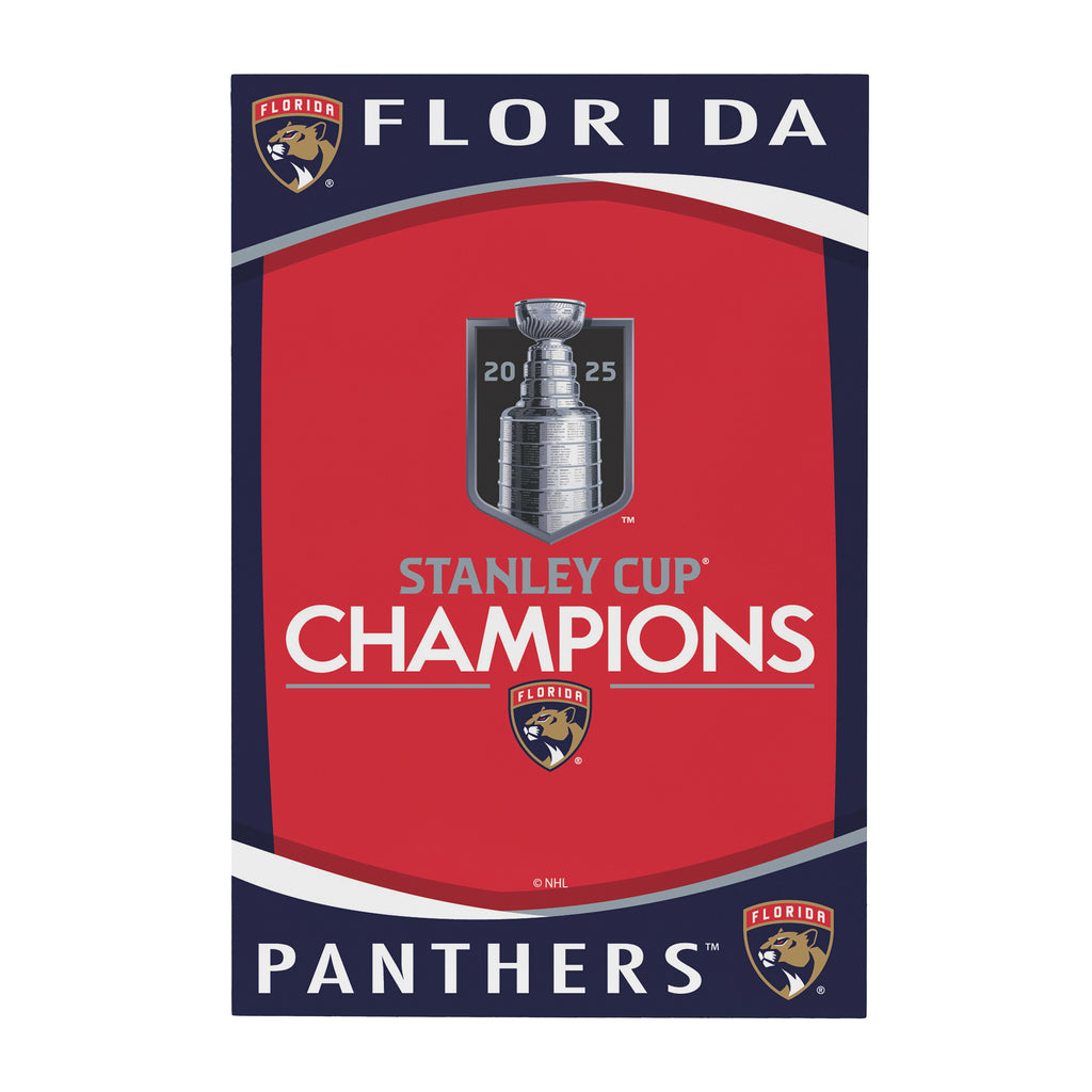 Celebrate the Florida Panthers' 2025 Stanley Cup victory with this striking wood wall sign. Perfect for fans, this piece adds a champion's spirit to any room.