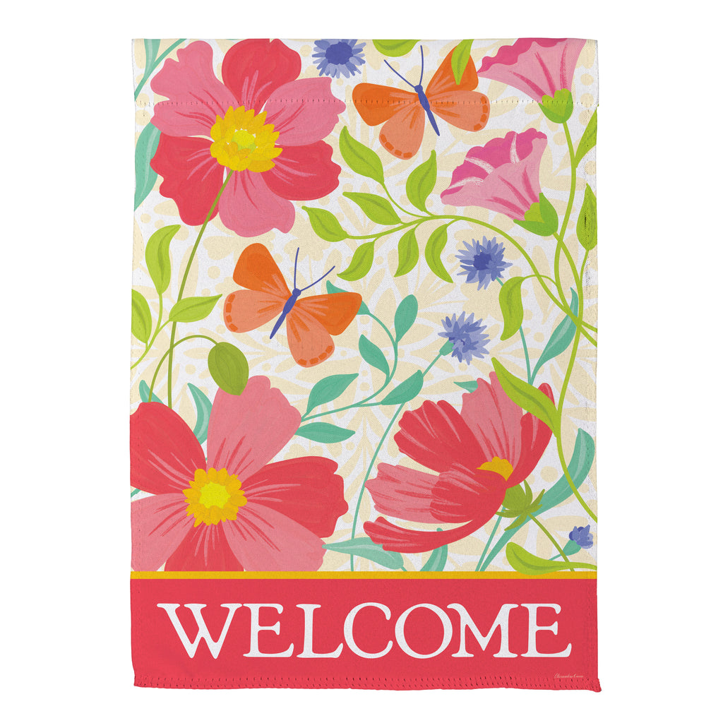 Brighten your outdoor space with the Wildflower Bunch Suede Garden Flag. This charming flag features vibrant spring flowers and a welcoming message, perfect for adding a touch of color to your garden.