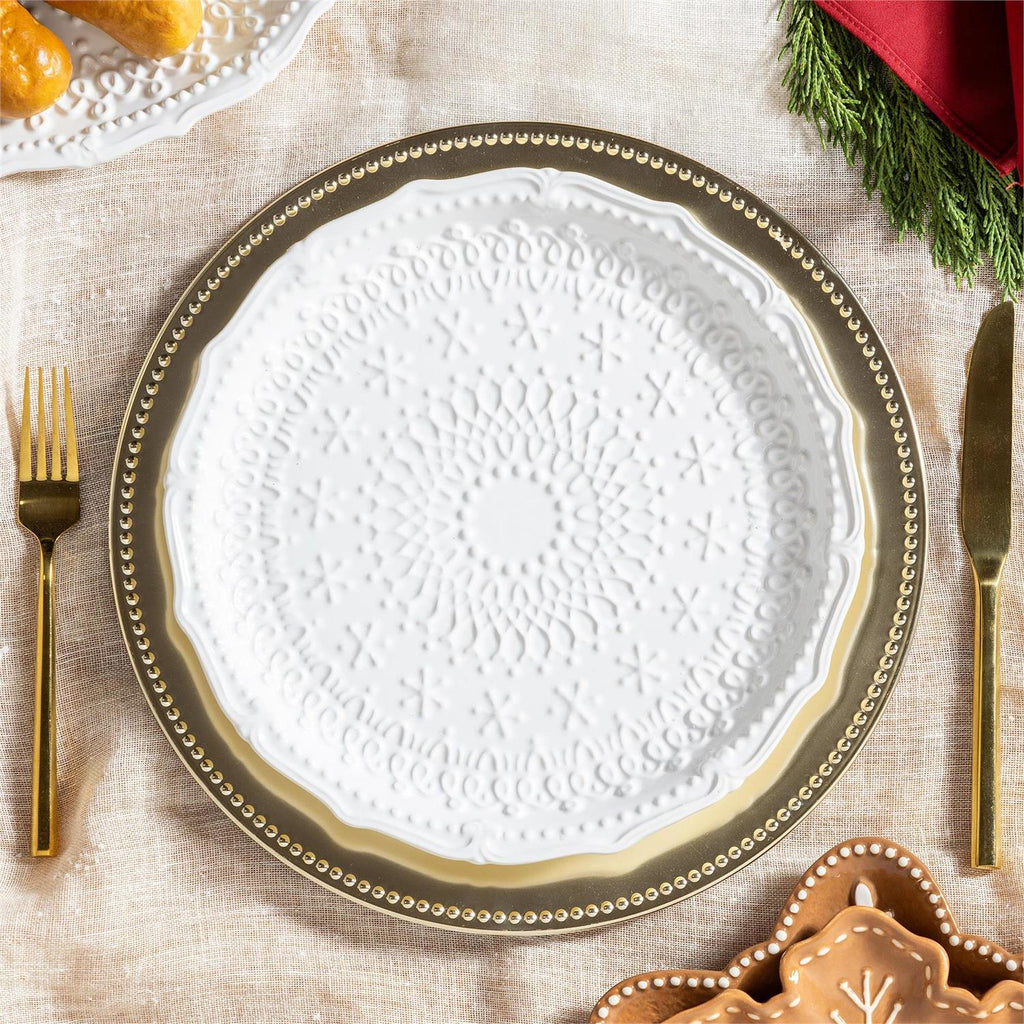 Elevate your holiday gatherings with the Baking Spirits Bright Gingerbread Snowflake Shaped Appetizer Plate. Crafted from embossed ceramic, this charming 7-inch plate is perfect for serving festive treats and appetizers. Its intricate snowflake design adds a touch of whimsy and elegance to your table setting, making it a delightful addition to any holiday decor. Ideal for both casual and formal occasions, this plate is as durable as it is beautiful, ensuring it will be a cherished part of your seasonal celebrations for years to come.