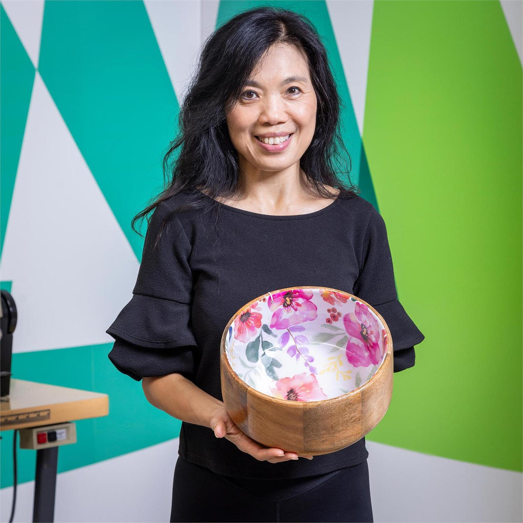 Discover the charm of the Pastels of Nature Wood Bowl, a perfect blend of rustic elegance and vibrant design. Measuring 9.75 inches in diameter and 5 inches in height, this bowl is crafted from natural wood and features a stunning floral interior. The colorful pastel flowers bring a lively touch to your dining table, making it ideal for spring or summer gatherings. Whether used for serving salads, fruits, or as a decorative piece, this bowl adds a splash of nature-inspired beauty to any setting.