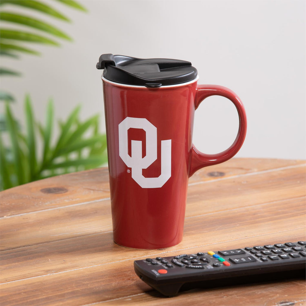 Show your school pride with the University of Oklahoma 17oz Boxed Travel Latte Cup. Perfect for coffee lovers on the go, this travel cup features a sturdy ceramic build and vibrant university logo. Its sleek design and comfortable handle make it easy to carry around campus or on your daily commute. The secure lid helps prevent spills, keeping your beverage hot and your travels mess-free. Packaged in a stylish gift box, it’s an ideal present for students, alumni, or any fan of the Sooners.